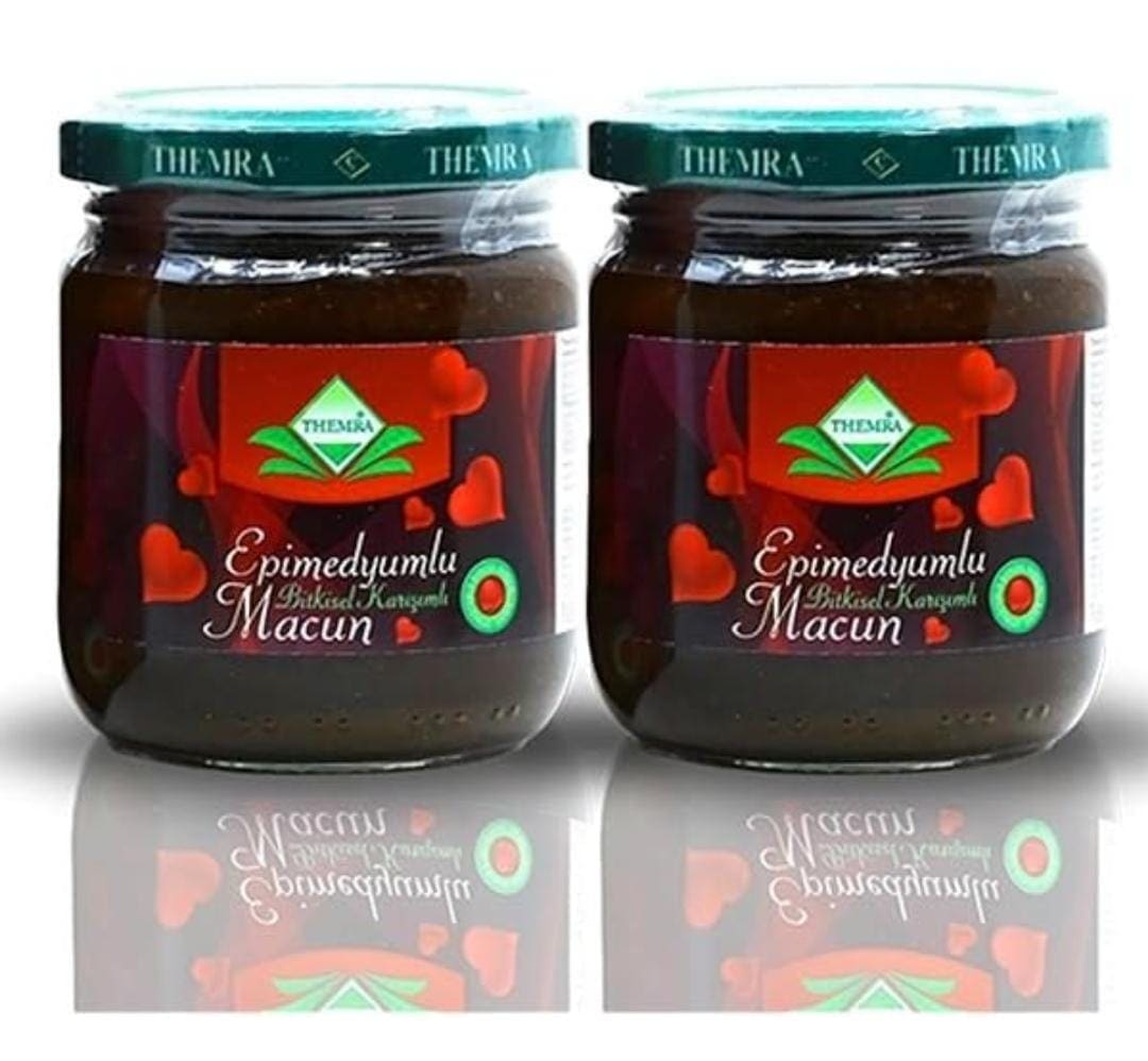Themra Epimedium Macun Honey ★ which are imported from Turkey is completely 100% natural and herbal. ★This herbal honey can be used by both men and women ★ It is 100% halal. ★No prescription required – Only 1 teaspoon works in 20 minutes Almost 1 million users Clinically tested and approved. ★ it rapidly brings about a sense of alertness, physical and mental vigor, and a deep sense of potency. ★ Inmen, spontaneous, lasting erections have been noted by several users. However,it is VERY POWERFUL and only small amounts should be taken until one discovers the optimum amount necessary for personal benefit. Suitable for both men and women, this is more than a simple se – ual tonic, it appears to rejuvenate the entire physical and mental structure. A single dose of this potent mixture isenough to vitalize the body, balance and refresh the mind, and energize the vital organs. Ingredients: Glucose Syrup, Strain flower honey, Mulberry molasses, Pollen, Horny Goat Weed %0,79 (Epimedium Sp.), Carop, Oat, Ginger, Cinnamon, Lesser galangal, Maca, American Ginseng, Nettle, Siberian ginseng, Ginkgo, Ginseng, Pumpkin, Tribulus, Cola nut, Vanilla flavor, Royal jelly.